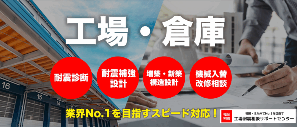 福岡エリアでは、近年自治体や企業の間で、「災害対策としての工場の耐震化」が特に重要視されています。